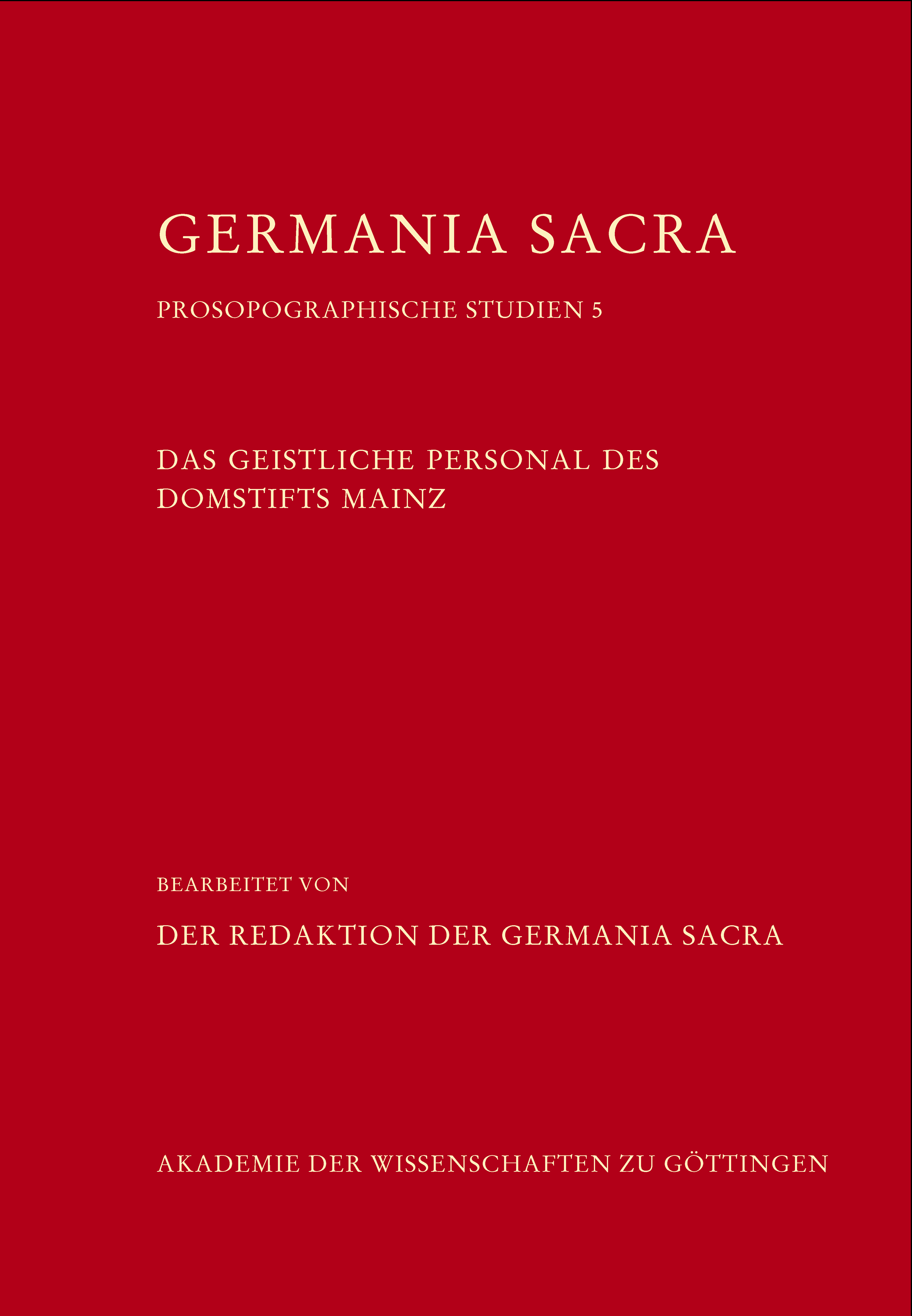 Das geistliche Personal des Domstifts Mainz, bearbeitet von der Redaktion der Germania Sacra (Germania Sacra. Prosopographische Studien 5), https://doi.org/10.26015/adwdocs-2481, Göttingen 2022.
